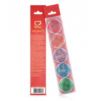 El kit se compone de Sensacions pomadas 5 de función ! Prepárese para volverse loco con ella! contiene : - Reducir : Ungüento uso femenino función astringe / momentáneamente a reducir el canal vaginal..aplicado 15 minutos antes de la relación; - Analle Ungüento uso mixto que tiene la sensibilidad periférica y proporciona una relación sexual placentera y agradable sin molestias..aplicar 10 minutos antes de la penetración - Retarde: Ungüento de los hombres , diseñado para retrasar la eyaculación y prolongar el placer . Tiene dos ingredientes activos : aceite de clavo (que ofrece poca amortiguación ) y menta ( ayuda en el fresco , lo que provoca una sensación de frescor )..aplicar solo por la glande y esperar 3 minutos para relaizar la penetración - Tropicale : Ungüento emocionante, uso mixto que tome medidas para calentar y enfriar simultáneamente. - Ardente: Ungüento para el uso femenino . Un emocionante super caliente se debe aplicar en el clítoris , provocando una sensación de calor y la intensa y de larga duración , lo que permite región de contacto hiper . Embalaje: Blister con 5 ungüentos 4g cada uno. NO besables .